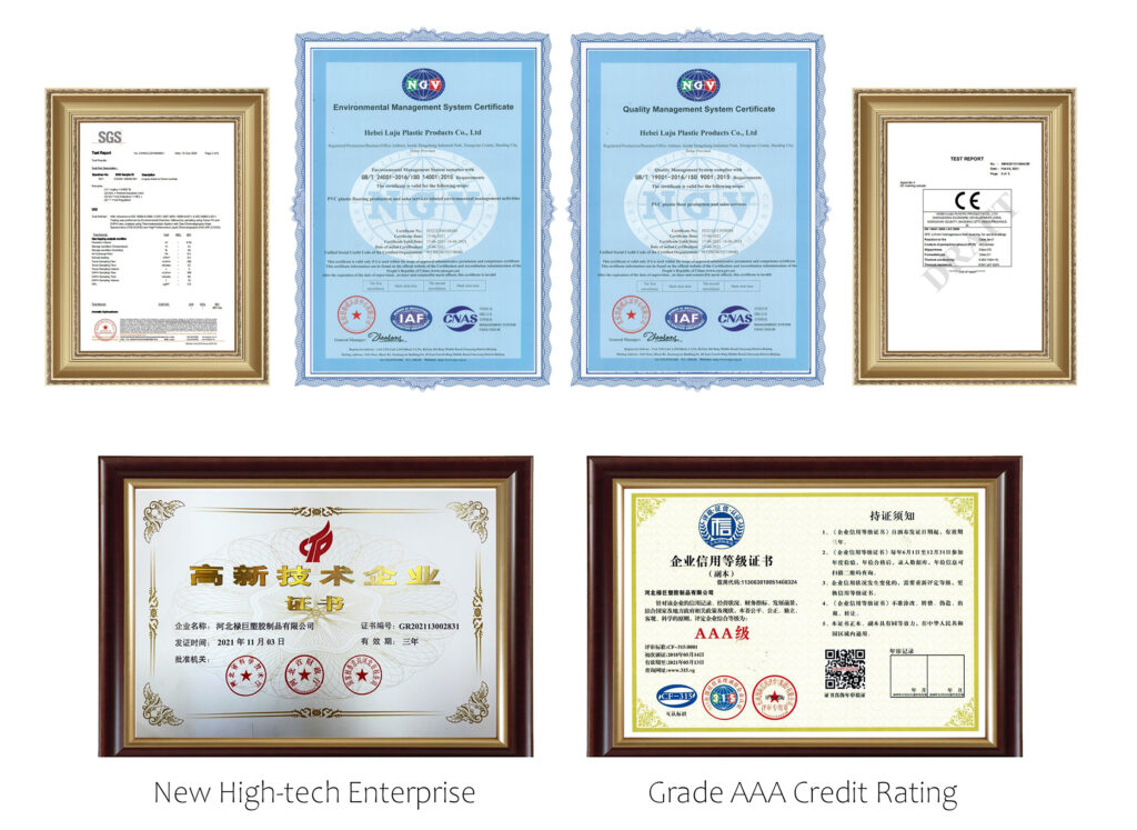 Luju Company has two types of certification documents: one is enterprise qualification certification, and the other is product test reports. In terms of enterprise qualification certification, the core essential ones are ISO9001 quality management system certification, ISO14001 environmental management system certification, and ISO45001 occupational health and safety management system certification. These three system certifications are the basic proof that the supplier has a standardized production and compliant operation capability. In addition, Luju Company has also received authoritative honors in the industry, such as high-tech enterprise certification, AAA-level credit enterprise certificate, etc. In terms of product test reports, Luju Company has Floorscore certification, CE certification, SGS certification, etc.